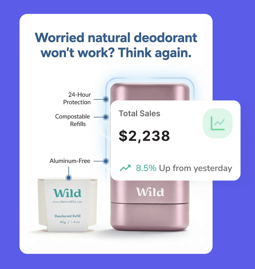 And if you want to take things a step further, Stirling's AI ad generator can build ads for your store in a similar style, in about 60 seconds.